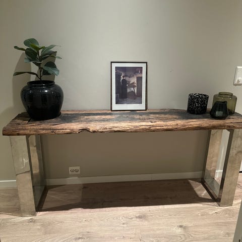 Vakkert konsollbord i gull og sort glass. Merke Thomas Hill. Ny pris 6000 kroner.
