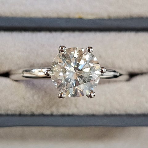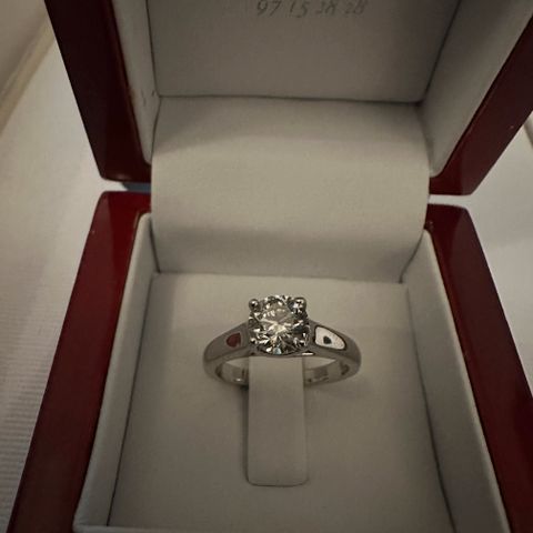 Diamantring 1,50ct i hvitt gull, med takst fra David Andersen medfølger.