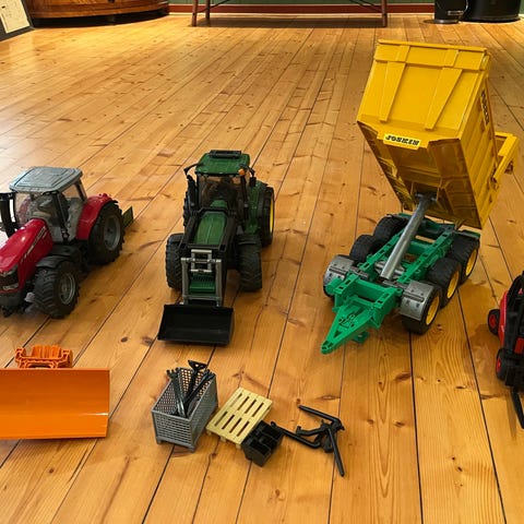Venstre løftesylinder frontlesser er defekt, men høyre sylinder holder den oppe. I god stand utenom dette.
