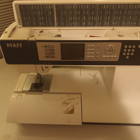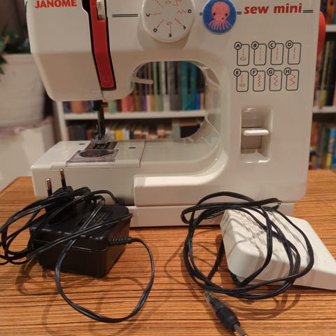 Singer Start symaskin med flere sømvalg, hvit farge og kompakt design. Inkluderer fotpedal og nålepute. Egnet for grunnleggende syarbeid og nybegynnere. Selges da den dessverre ikke blir brukt.