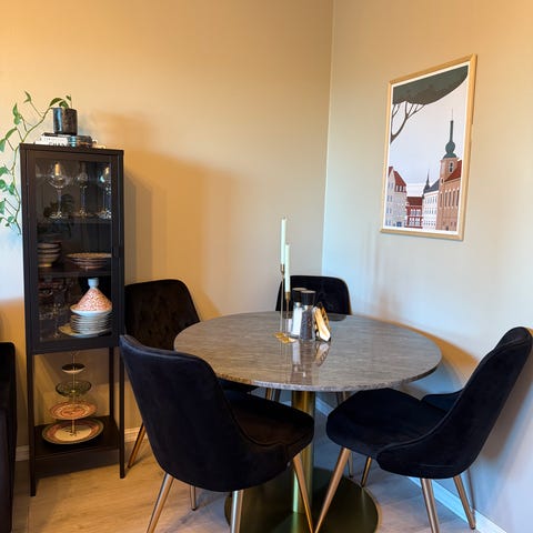 Marmor spise bord med stoler