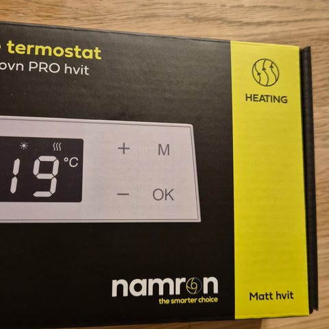 Nobo NCU-2T elektronisk termostat med digital temperaturdisplay. Enheten har justerbare innstillinger for temperaturkontroll og er designet for effektiv styring av oppvarmingssystemer.