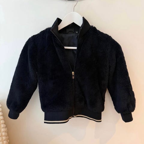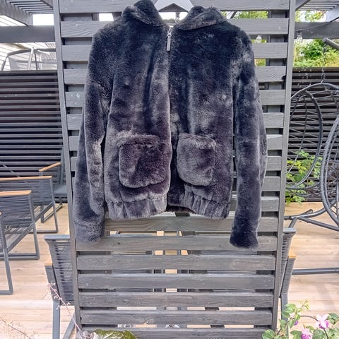 Svart jakke i fuskepels frå h&m. Str 146/152.