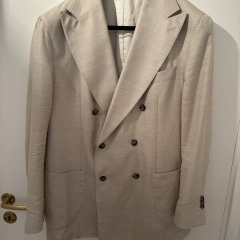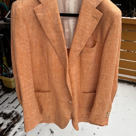Helt fantastisk blazer kjøpt på ferner Jacobsen med loro piana silk air stoff. Kvaliteten, fargen og utseende på denne blazeren er av høyeste klasse. Gjerne ta en titt på profilen min legger ut fler blazere fremover. Blazerene kan ha blitt justert så gjerne se noen av målene, gjerne ta en titt på annet jeg har lagt ut fra Cavour, Oscar Jacobsen, Stenstrøm og corneliani