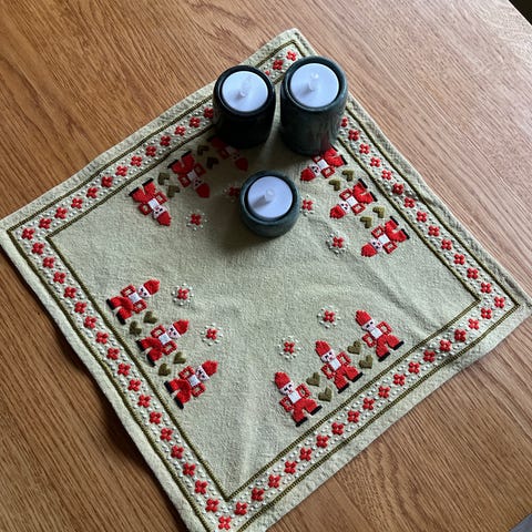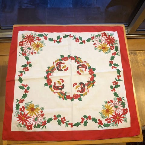 Vintage. Koselig juleduk med utradisjonell bunnfarge
