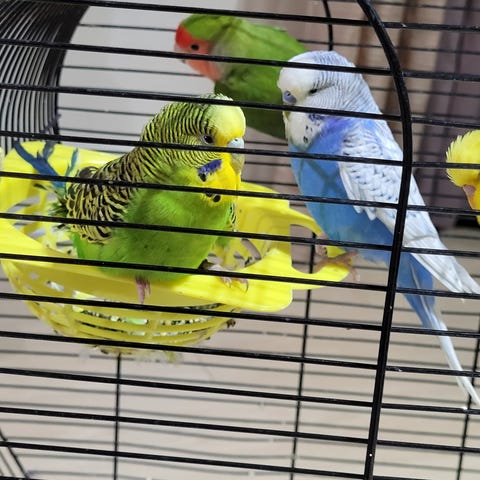 Undulatar 3 med bur. Solgt sammen