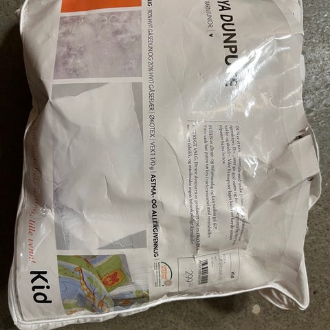 Fyll: 90% hvit andedun, 10% hvit andefjærFyllvekt: 65*80 cm - 60 gram, 80*100 cm - 90 gram, 100*140 cm - 160 gram