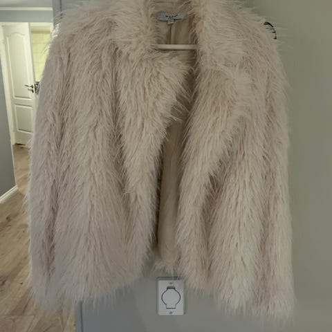 Nelly Andre jakker i størrelse S, farge grå, laget av fuskepels. Jakken er designet for kvinner og har et unikt teksturert utseende.