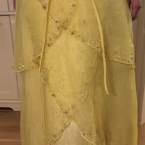 Noen merker (se bilde 8 og 9), selges derfor billig. Kan hende de går bort med litt vanish og forsiktig vask. Kjolen er vasket for hånd med milo etter bruk.