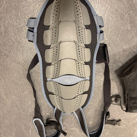 Lapp er tatt av men de er ubrukte. Passer til barn opp til 140 cm. Brukes i alpinbakken for å beskytte ryggsøyle. 350kr pr stk