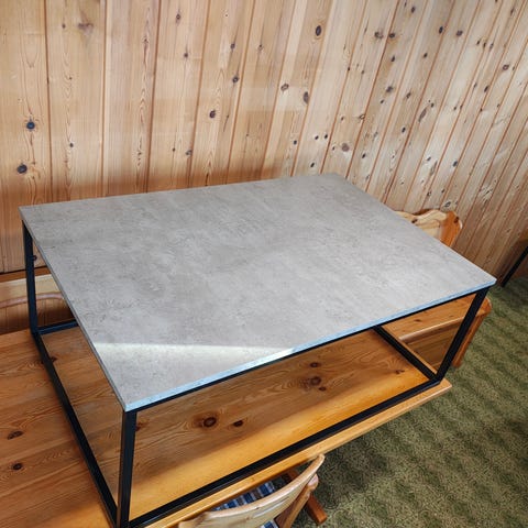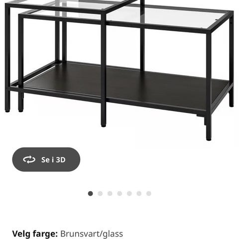 Sofabord mørkebrunt med svart stål bein