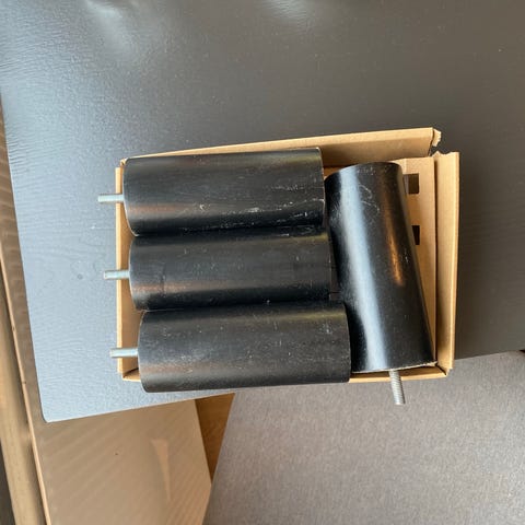 Ang. dimensjonen på skruen så ble bena erstattet med ben fra IKEA. Disse passet uten problemer så det er tydeligvis samme dimensjon.
