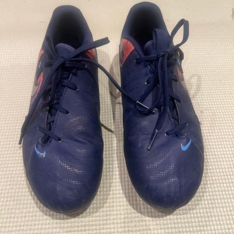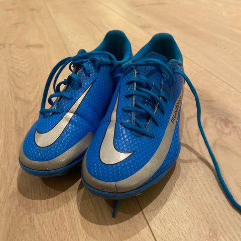 Nike Phantom fotballsko i blå farge, str 32 Skoene har knotter under for godt grep på underlaget. Egnet for bruk på fotballbanen.