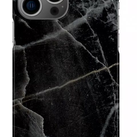 IDEAL OF SWEDEN telefondeksel i svart med marmormønster. Dekselet har åpning for kamera og knapper til iPhone 15 prokjøpe fra Sverige betalt 600kr