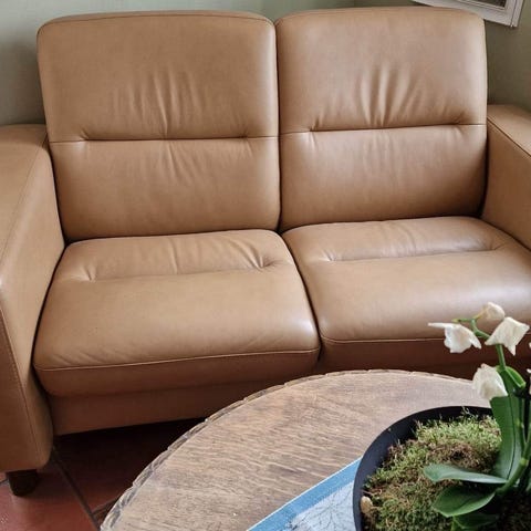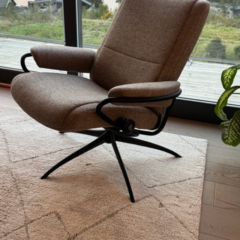 Pent brukt lenestol i sort skinn selges, meget behagelig å slappe av i. Sovemaskin 😀 3500,- eller høystbydende 👍