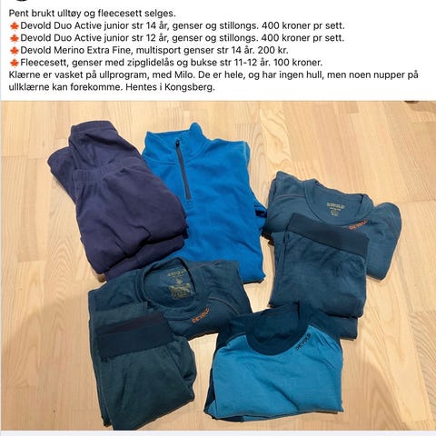 Mykt Ullsett fra Dovrefjell, helt og fint og veldig pent brukt. Mener det er str 13/14 år (står ikke str inni) - men kjøpte det til min sønn i fjor, da var han 12,5 år, i år er det litt lite for han.