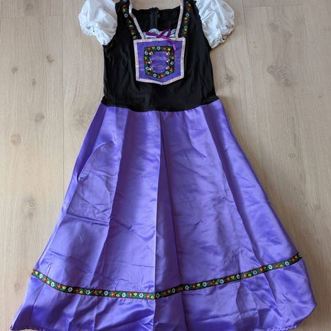 Northern Winterland Lucia Costume Dame i hvit bomull, størrelse 160. Kostymet har detaljer som krage med broderi og er laget av 100% bomull med glitterelementer. Passer til bruk ved Lucia-feiringer og lignende arrangementer.
