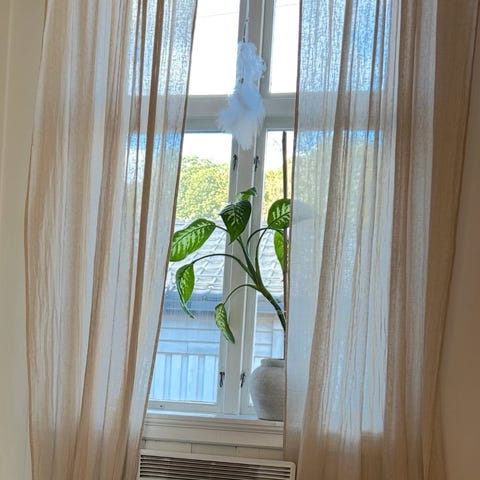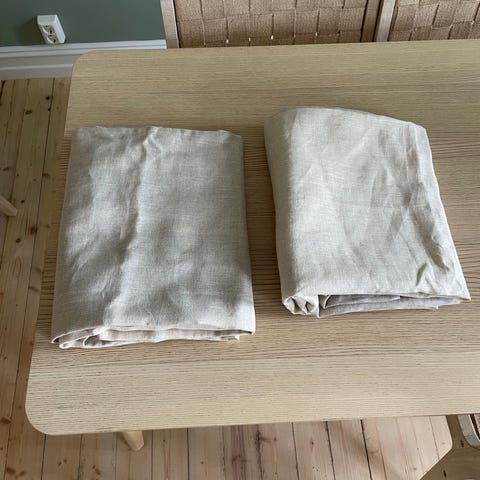 Mål på settet som er vasket: 200x130 cm per gardin.
