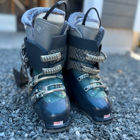 Slalomstøvler 322 mm som tilsvarer skostørrelse 43. Litt slitte etter mye bruk, men holder minst en sesong til.