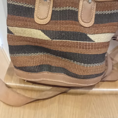 En pen stor sort veska tror den er skinn ! Veldig behagelig og tåler mye!
