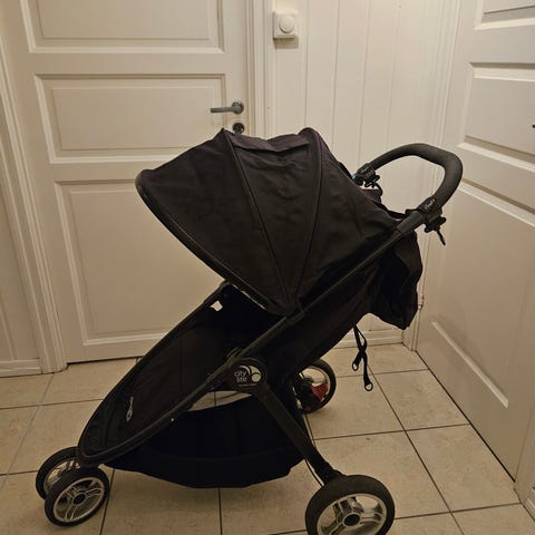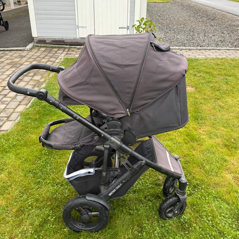 Britax barnevogn i svart. Gode hjul på denne og det er ei letthåndterlig vogn. Er i god stand