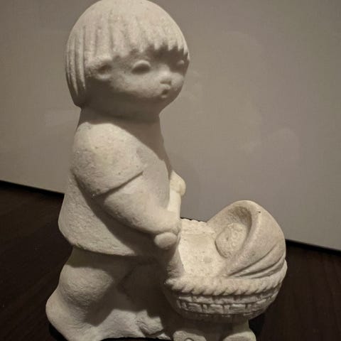 Marbell Stone Art Belgia – vintage steinskulptur, utskjæring: mor og barn, kubisme, abstrakt skulptur