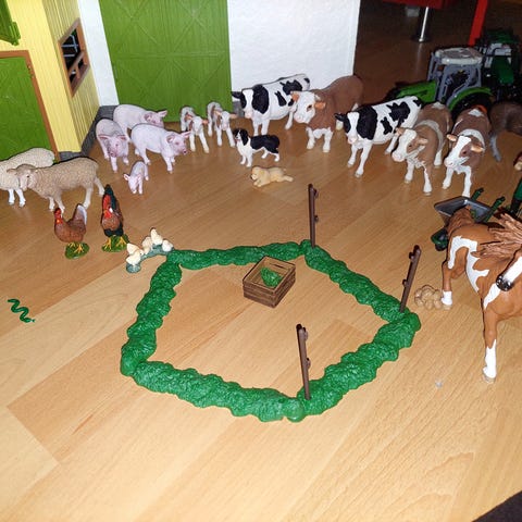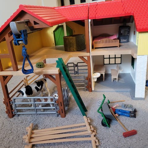 Pent brukt Schleich gårdsfjøs selges. Solid lekesett med mange detaljer.