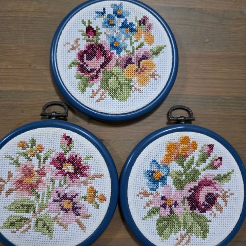 Jeg har brodert dette selv for mange år siden, skal nå flytte og har ikke plass til dette, Bildet har en ramme som er produsert av Mathisen Rammeverksted i Hauge i Dalane. Det broderte bildet har en klassisk stil og passer til dekorasjon i hjem eller kontor.
