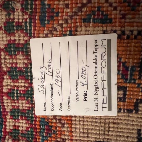 Selger et nydelig persisk Nadjafabad-teppe, garantert håndknyttet og produsert i Iran. Teppet er kjøpt fra IKEA, laget av 100 % ull, og har et klassisk, tidløst mønster med dype røde og blå fargetoner som gir rommet et elegant og varmt preg.