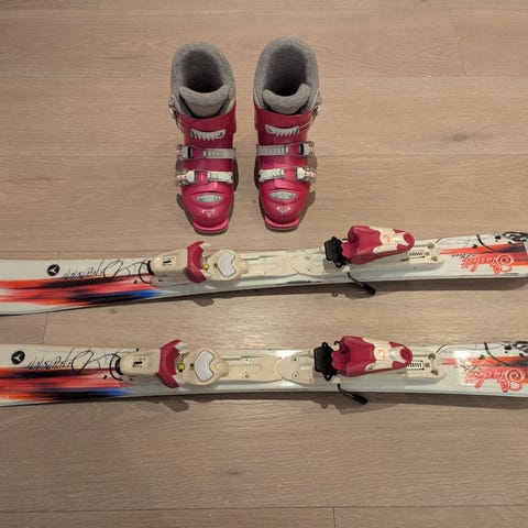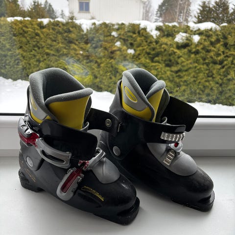 Slalomsko /alpinstøvler til barn i alderen ca. 4-5 år. Se bilder av undersiden av skoene for eksakt størrelse.