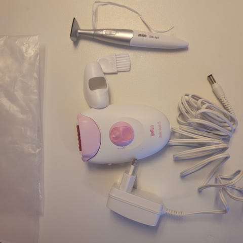 Braun Silk-épil Xpressive 7681 epilator med flere utskiftbare hoder og tilbehør. Inkluderer oppladbar enhet, ladekabel, bruksanvisning og oppbevaringsetui.