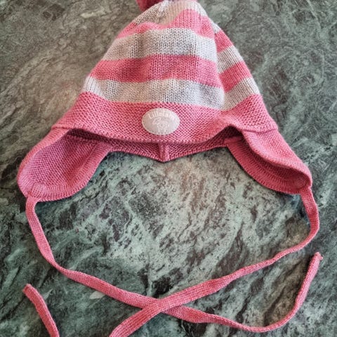 Lillelam ull lue og babytøfler til jente, rosa, størrelse 44-46