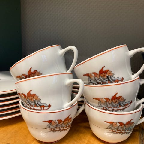 5 stk rødvinsglass i nisseservice serien til Porsgrund.