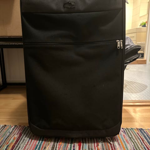 Stor rød koffert til salgs. Selges grunnet plassmangel og overgang til kabin bagasje. Pent brukt og alle glidelåser fungerer. Noen av hjulene er begynt å bli tregere. Bruksmerker utenpå kofferten. Ser fin ut inni. Kjøper henter på Kuhnle (Os). Sender ikkje.