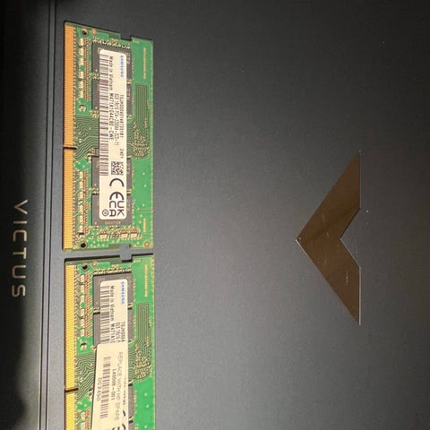 Kingston og SK hynix 16GB DDR4 RAM-moduler for bærbare datamaskiner. To moduler med samme kapasitet og hastighet, egnet for oppgradering av minne i kompatible enheter.