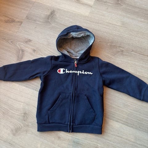 Champions treningsoverall for barn i størrelse 80. Settet består av genser i gul farge og bukse i mørk blå farge med Champions-logo på