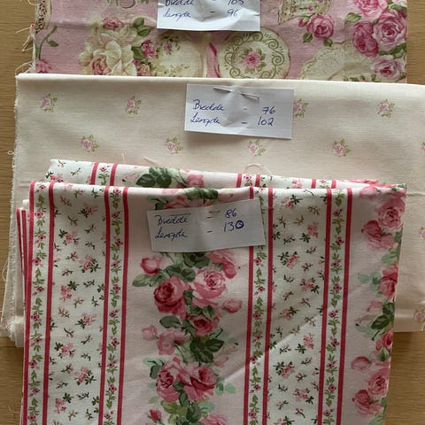 Lilla rull 6m 120kr, rosa 4,5m 80kr og orange 7m 150kr