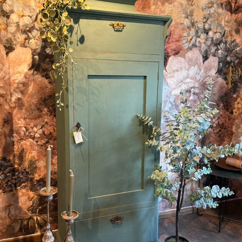 Dette gamle skapet har en veldig god plass til mange ting . Dette skapet kan man mikse inntil nye ting også , det gjør det spennende med nytt og gammelt !