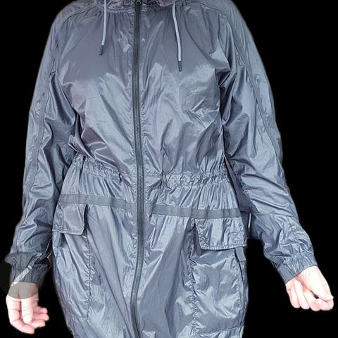 Dette er en lite og pent brukt Kari Traa foret vindjakke,, halvlang. Foret kan tas av og på med glidelås. Jakken har hette og lukkes med glidelås. Gode lommer. Perfekt til tur og utendørs aktivitet i både litt kaldt vær og vind.