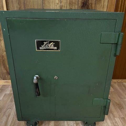 Solid verdiskap; brann, tyveri osv. Solid låsmekanisme (bolter). 2 nøkler medfølger. Svært lite brukt. Hentes i Gjerdrum eller kjøper ordner annen transport.
