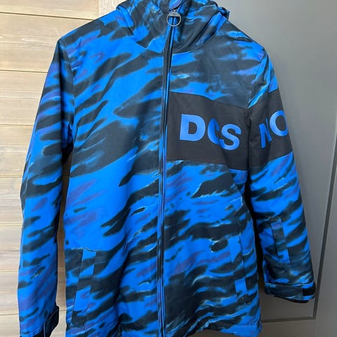 Skijakke for alpin / slalåm / snowboard fra Surfanic i størrelse 164. Avtagbar hette, mansjetter på ermene, snøskjørt med to justeringsmuligheter, lomme til heiskort, og utvendig og innvendig brystlomme.