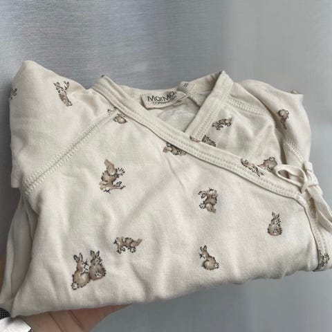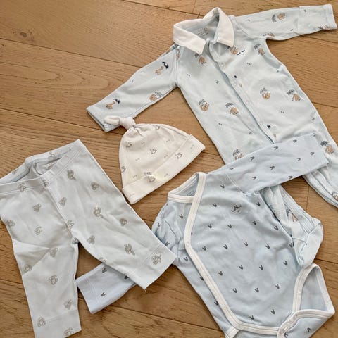 Nydelig sett med body og bukse i bomull fra Livly, størrelse newborn (50-56). Pent brukt, ingen hull eller flekker.