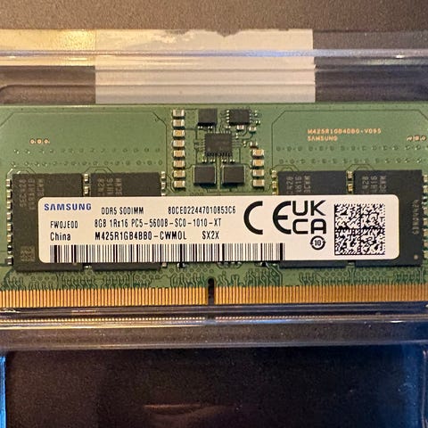 Selger Samsung DDR5 RAM, 16 GB totalt (2×8 GB).