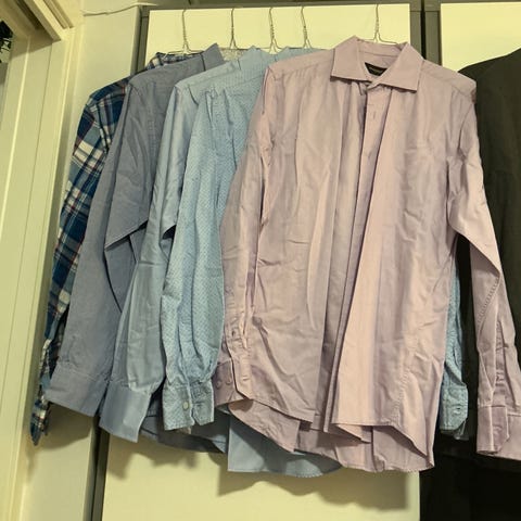 Dressmann skjorte i størrelse L for menn. Laget av bomull med lilla stripemønster. Passer til formelle og uformelle anledninger.