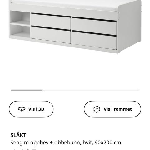 IKEA Släkt seng med underseng og oppbevaring. Kjøpt 2019, god stand, men noen bruksmerker- se bilder. Selges med to madrasser i fin stand, brukt av et barn.