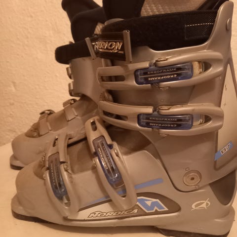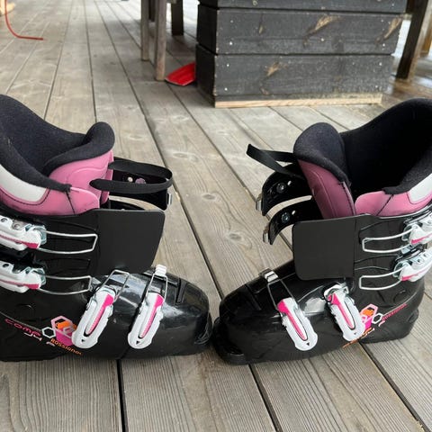 Slalåmski til voksen. Passet fint til ei dame med størrelse 40-41 i vanlige sko. Brukt én gang. Fremstår som ny.