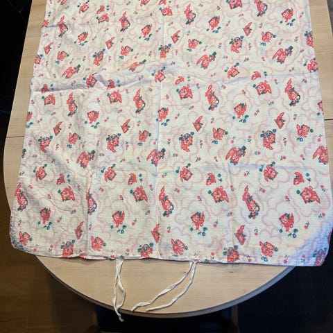 Alt er bomullsstoff i ulike lengder. Noe er 50 x 140 og andre er 1 meter.