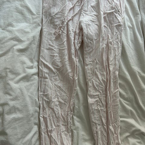 Herlig stripete pysjbukse fra Danmark, 100% bomull, lommer foran og bak, str 36. Brukt som vanlig bukse på sommeren, ikke som pysj