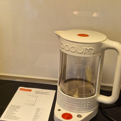 Siemens vannkoker. Utstyrt med flere temperaturinnstillinger (70°, 80°, 90°, 100°) for tilpasset oppvarming.