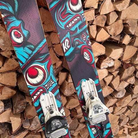 K2 Twintip-ski 129 cm med binding selgast for 800 kr. Nypris 2500 kr. Brukt 2 gongar før dei blei for små.